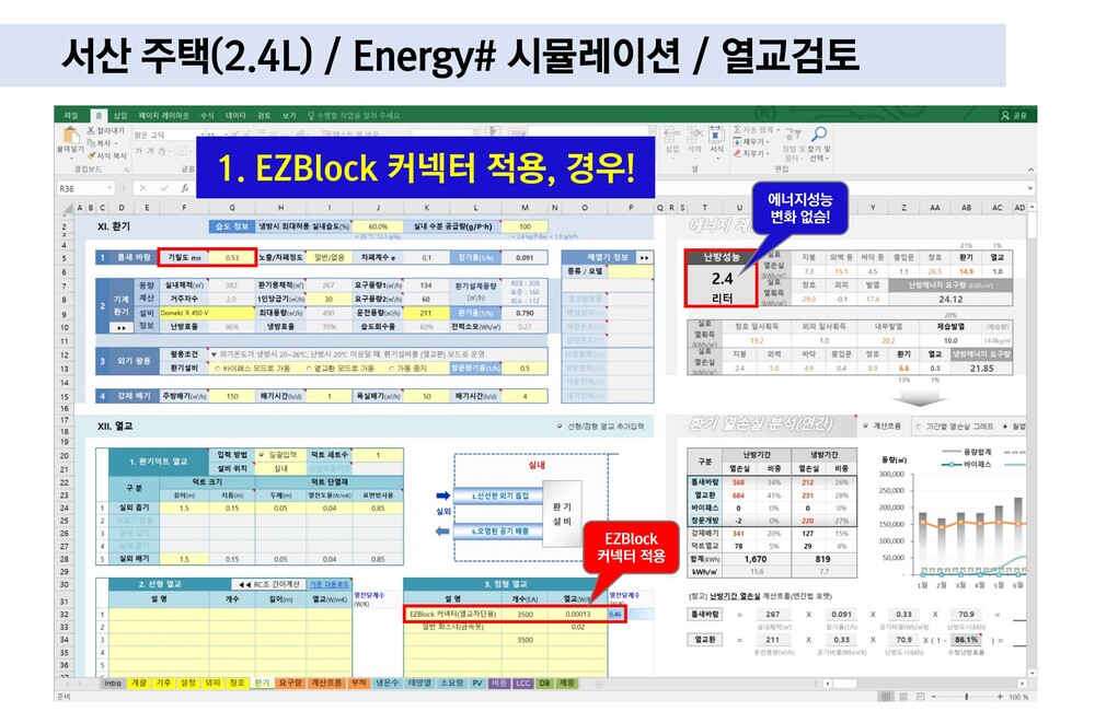난방성능은 열교값을 적용하지 않은 상태(2.4L)와 동일하게 나타 남. (열교 제로!)