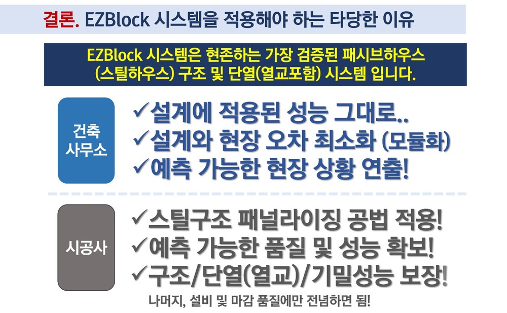 외피시스템으로는 국내최초이며, 이는 EZBlock 시스템이 패시브하우스에 적합한 시스템이라는 것을 의미 합니다.